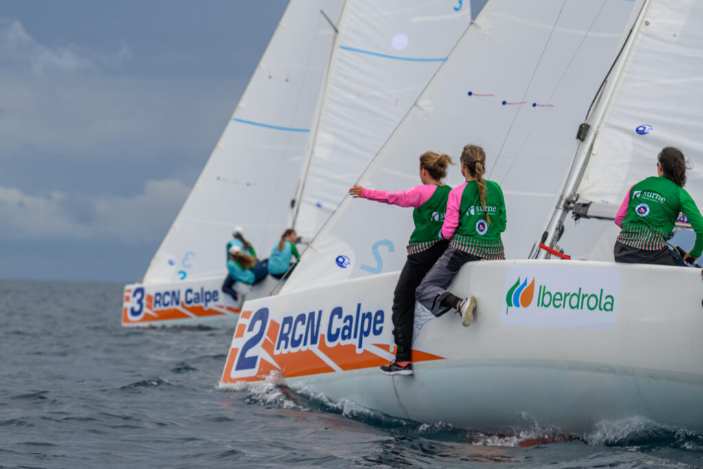 La bahía de Calpe ha ofrecido mar llana y vientos bastante inestables en dirección e intensidad, de entre seis y doce nudos, lo que ha obligado a las tripulaciones a mantenerse muy concentradas en la táctica. Y las del Solgreen han demostrado que es uno de sus puntos fuertes. Elena de Tomás, Martina Lodos, Obdulia Fernández, Sarai de Tomás y Andrea Perelló han firmado dos triunfos parciales y encabezan la tabla de la final de la Liga Iberdrola, con el equipo Sailing Point del CN Altea pisándoles los talones. Completa el podio provisional tras este corto pero intenso día el Ganbatte, tripulación veterana del RCN Calpe. El Surne del RCMA-RSC y el Unisa del RCN Calpe ocupan la cuarta y quinta posición, respectivamente, con los puntos muy ajustados.