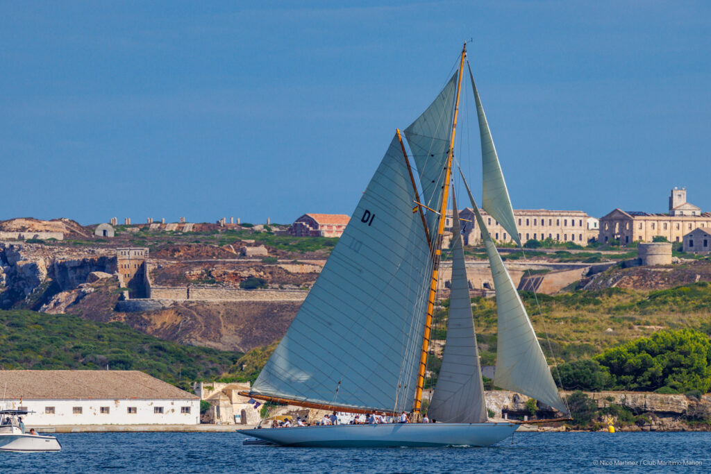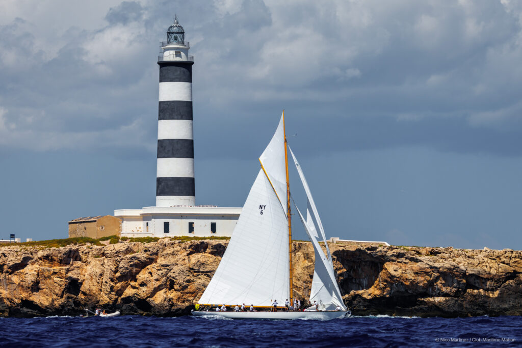 El momento más dramático de la semana, y por el que esta edición será recordada en el futuro, se produjo el jueves, cuando una súbita tormenta con fuerte precipitación y rachas de 53 nudos sorprendió a la flota y dejó fuera de combate a dos de los barcos más emblemáticos: el Tuiga (1909), completamente desarbolado, y el Lady Anne (1912), que sufrió la rotura del botalón y de una cruceta. Aquel día, la regata ofreció también sus estampas más bellas, al establecerse la línea de salida dentro de la rada de Mahón, junto a la Isla del Rey. Las dos pruebas siguientes (ayer viernes y hoy sábado) se disputaron con viento estable del sur y sin incidentes. En la última jornada, el anemómetro osciló entre los 6 y 12 nudos en distintos puntos de la travesía hasta la Isla del Aire, cuyo faro es el icono de esta regata considerada como la más importante del circuito de vela vintage del Mediterráneo.