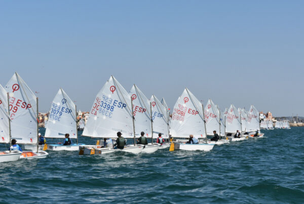 Vela ligera 16 de octubre de 2023 Andaluces y catalanes se llevan los títulos del 8º Trofeo de la Hispanidad Casi 200 regatistas de la clase Optimist navegaron durante cuatro jornadas en la bahía de… Prensa-RFEV
